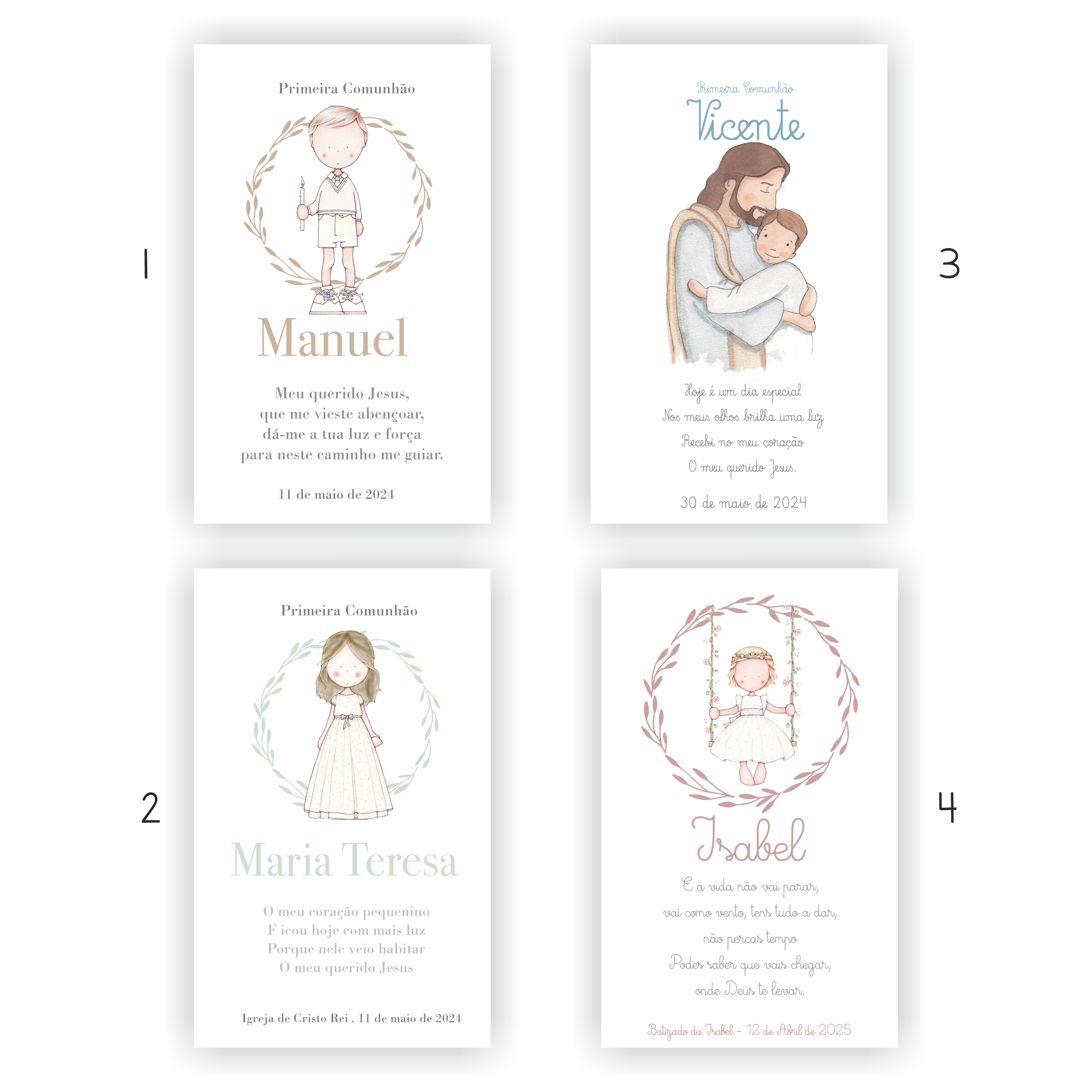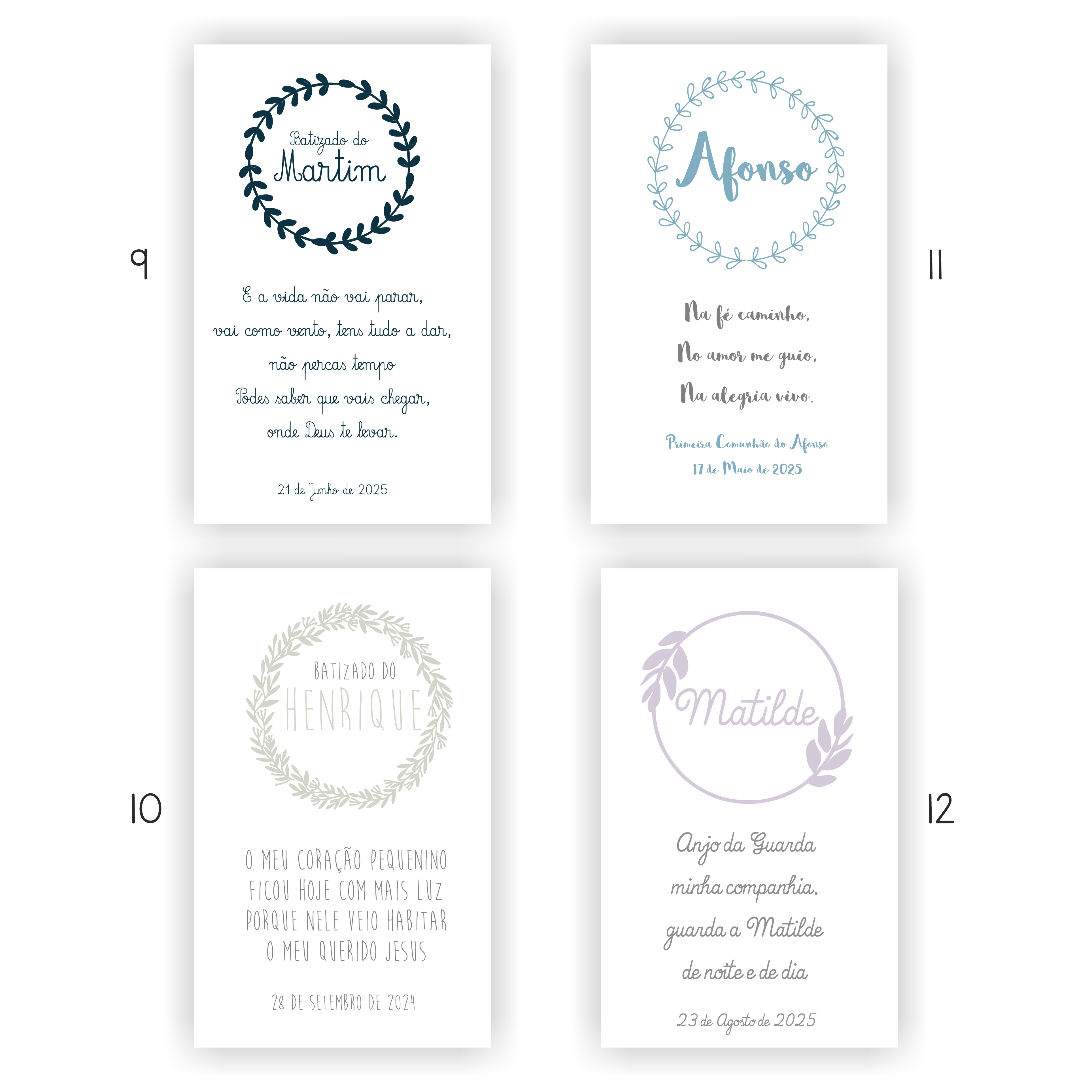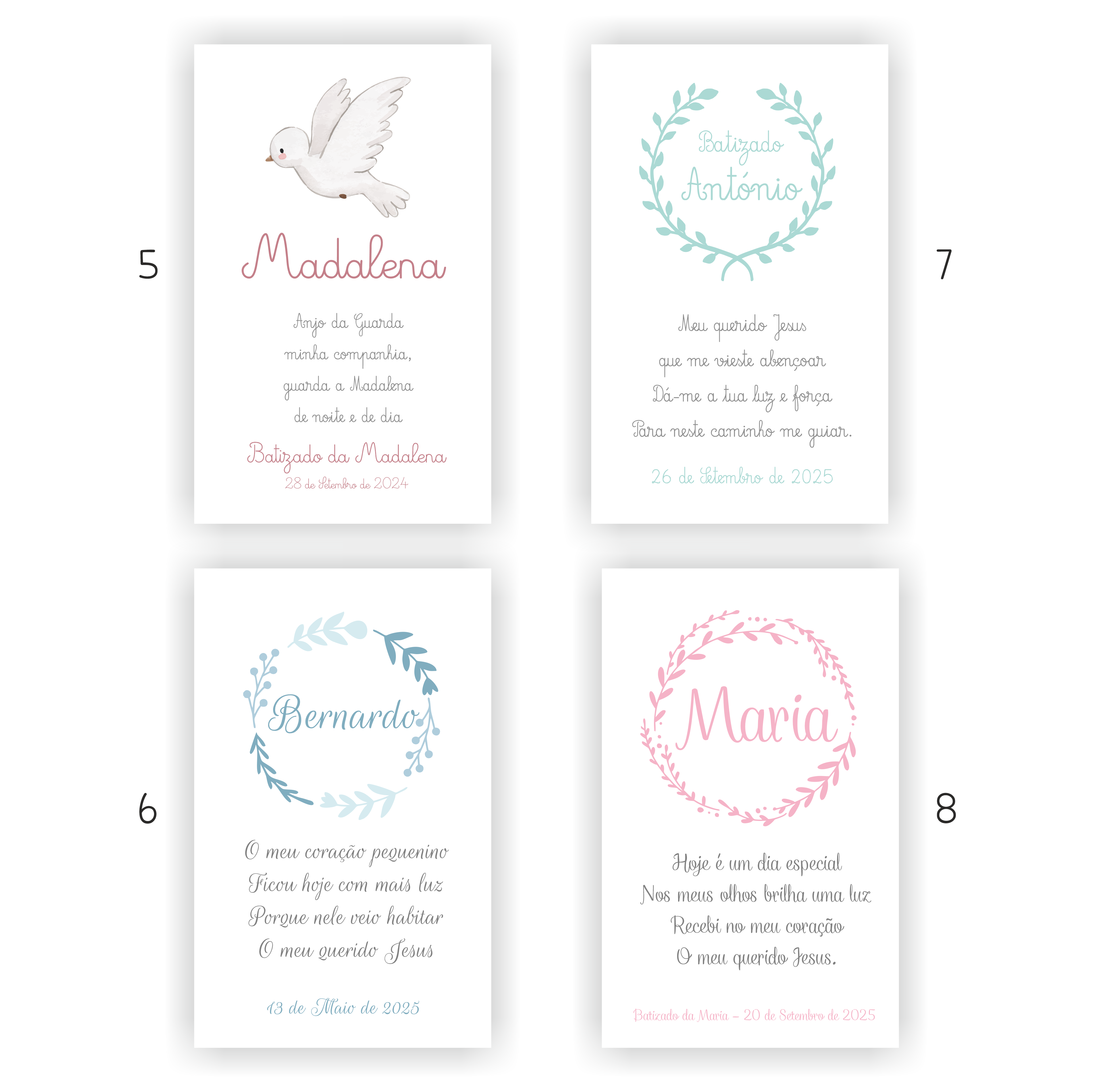Os nossos queridos santinhos ou pagelas são uma lembrança perfeita para as cerimónias mais queridas deste ano! Em primeiro lugar servem de recordação deste dia tão especial e que se tornou ainda mais feliz com a presença de quem mais gostamos.